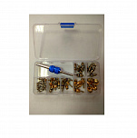Ремкомплект для сервисных портов Шредера. В комплект входит сервисный ключ, ниппеля R-134 6 типоразмеров. Поставляется в пластиковом футляре.