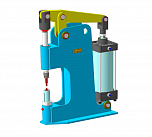 Вертикальный. Гидравлический, напольный. Материал клёпки – сталь, медь, алюминий - 6, 8, 10мм в том числе удлиненные. Усилие до 5т. Клепальный станок управляется нажатием на педали.
