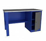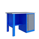 Верстак однотумбовый поставляется в разобранном виде. Нагрузка на столешницу до 600 кг. Стандартный цвет: корпус - серый глянец RAL 7030, ящики и двери тумб - синий RAL 5017. Размеры:855x1400x700 мм. Вес: 76 кг.