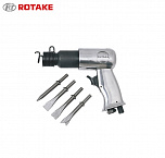 Пневмозубило с набором зубил (4шт х 150мм) Ход поршня 41мм. Частота ударов 4500уд/мин. Рекомендуется для резки металла толщиной до 2мм, кузовных работ, удаления заклёпок, срезки болтов, гвоздей и т.п.Также рекомендуется для отбойных и демонтажных работ по бетону. Для рубки металла на кузовных станциях.