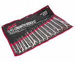 Набор ключей рожково-накидных в планшете 15 предметов. В комплекте: 6, 7, 8, 9, 10, 11, 12, 13, 14, 15, 16, 17, 18, 19, 21 мм. Зеркальная полировка. Материал: хром-ванадиевая сталь, повышающий износостойкость инструментов.