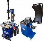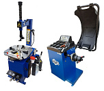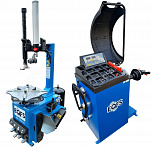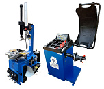 Комплект из полуавтоматического шиномонтажного стенда TS-21, для колёс 99% автопарка России. Для дисков: 11÷20”. В комплекте: пистолет для подкачки шин + монтажка + пластиковые накладки на зажимные кулачки + регулятор давления с влагоотделителем и манометром. + TS-550 Балансировочный станок (с лазером) Для дисков: 10÷24” (254-609 мм). В комплекте: кожух с автозапуском + клещи + кронциркуль + быстрозажимная гайка + набор конусов.
