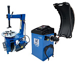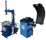Комплект TS-24 Станок шиномонтажный. Полуавтоматический. Квадратный стол. Для дисков: внешний 11÷21”, внутренний 12÷24”.  Усилие отрыва покрышки 2700 кг. В комплекте: пистолет для подкачки шин + монтажка + пластиковые накладки на зажимные кулачки + регулятор давления с влагоотделителем и манометром. + TS-450 Балансировочный станок (без лазера) Для дисков: 10–24” (254÷609 мм). В комплекте: кожух с автозапуском + клещи + кронциркуль + быстрозажимная гайка + набор конусов.