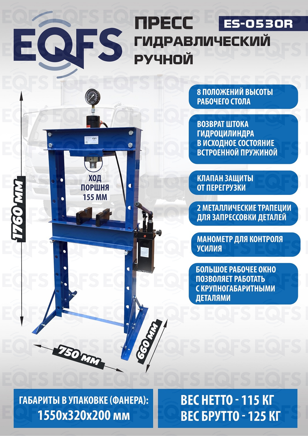 Конструктивные особенности пресс 30 тонн гидравлический ручной ES0530R: