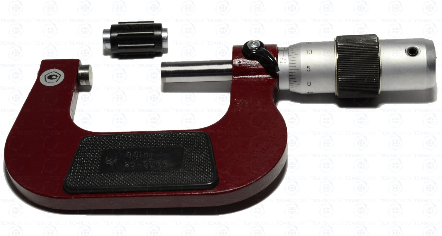 Цена деления 0,01 мм. Диапазон измерения от 25-50 мм. Для измерения наружных размеров изделий. Измерительные поверхности микрометра оснащены твердым сплавом. Микрометры укомплектованы одной установочной мерой. Класса точности 2. ГОСТ 6507-90. Поставляется в двух вариантах с поверкой и без поверки!