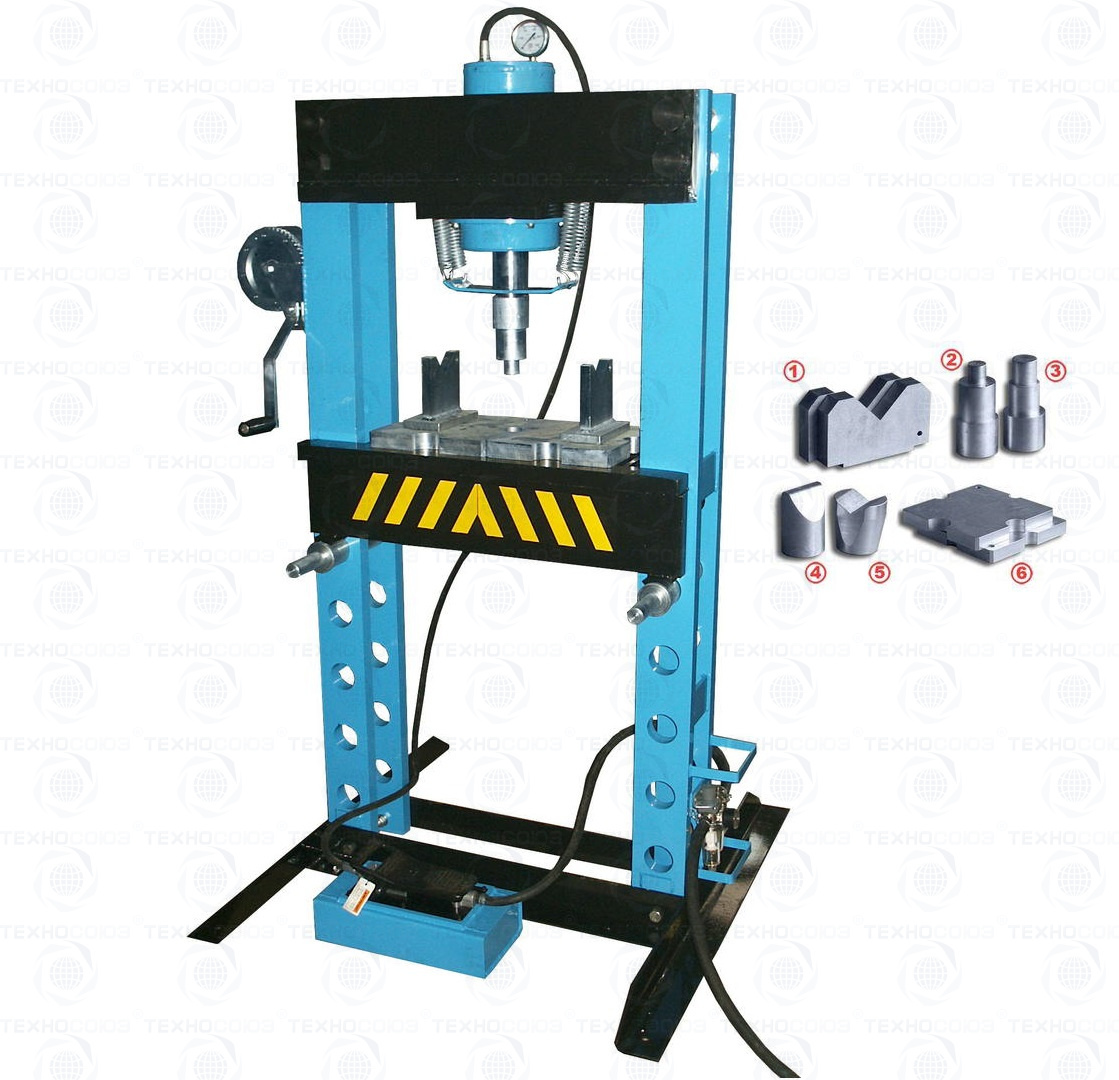 Пресс пневмогидравлический П-120 идеально подходят для использования в мастерских и автосервисах, подсобных хозяйствах. Имеют малые габариты, что позволяет установить их с минимальным использованием рабочего места. Надёжная гидравлическая часть, манжеты и уплотнения от лучших производителей обеспечивает отсутствие утечек масла грязи на рабочем месте. Простая, проверенная конструкция гарантирует надежность в работе и простоту в эксплуатации. Прилагаемый комплект сменного инструмента: призмы (1), пуансоны различной формы и диаметров (2,3,4,5), плиты с отверстиями (6), позволяет выполнять широкий спектр таких работ, как гибка под различными углами, рихтовка, запрессовка и т.п. Возможно комплектование оборудованием для гибки труб. Все пресса имеют удобное просто регулируемое по высоте рабочее место, современный внешний вид и дизайн. Возможно цветовое решение прессов по желанию заказчика.