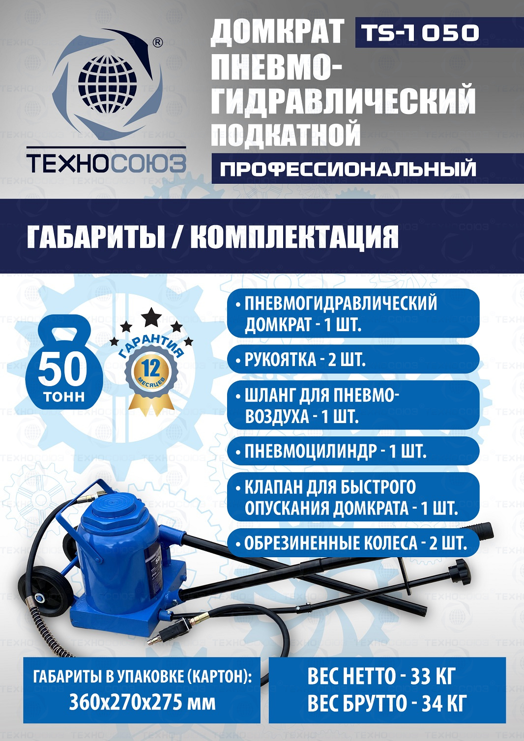 Технические особенности TS-1050 грузовой подкатной пневмогидравлический домкрат 50 тонн: